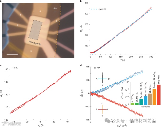 本文提出的范德华挤压技术为二维金属的制备开辟了新路径,具有重要的科学意义。首先,该技术通过将金属材料完全封装在单层MoS2中,克服了二维金属在原子薄极限下难以稳定的挑战,提供了一种高效的原子级制造方法。这一方法不仅成功制备了铋、锡、铅、镓和铟等多种二维金属,还确保了其良好的环境稳定性,为今后二维金属的广泛应用奠定了基础。其次,单层铋的成功制备揭示了此前未知的新的物理特性,例如增强的电导性和明显的P型电场效应,进一步推动了二维金属在量子、电子和光子器件中的潜力挖掘。最重要的是,这一范德华挤压技术不仅可以实现二维金属,还为二维金属合金及其他二维非范德华化合物的开发提供了可能,拓宽了二维材料的研究领域,开创了新型材料平台,助力未来量子科技、电子器件及光学器件的发展,具有深远的科研和技术应用价值。