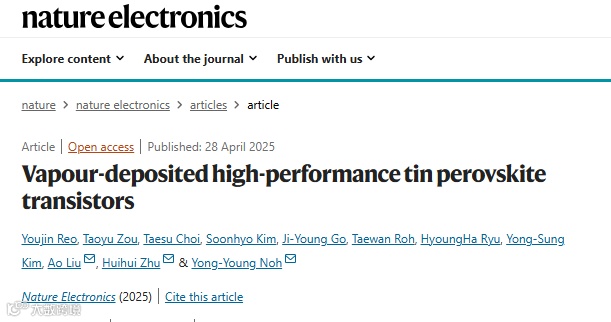 Reo, Y., Zou, T., Choi, T. et al. Vapour-deposited high-performance tin perovskite transistors. Nat Electron (2025).