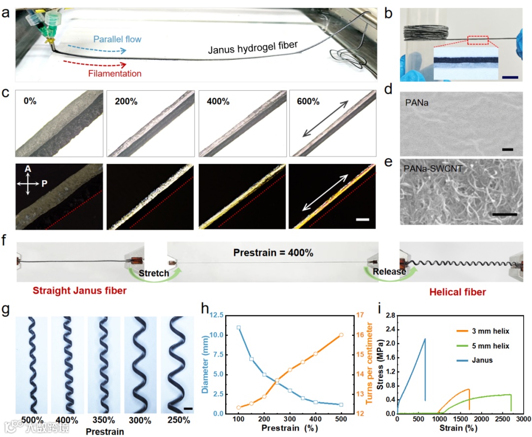 图3 p/n交替的Janus螺旋水凝胶纤维的制备及性能研究