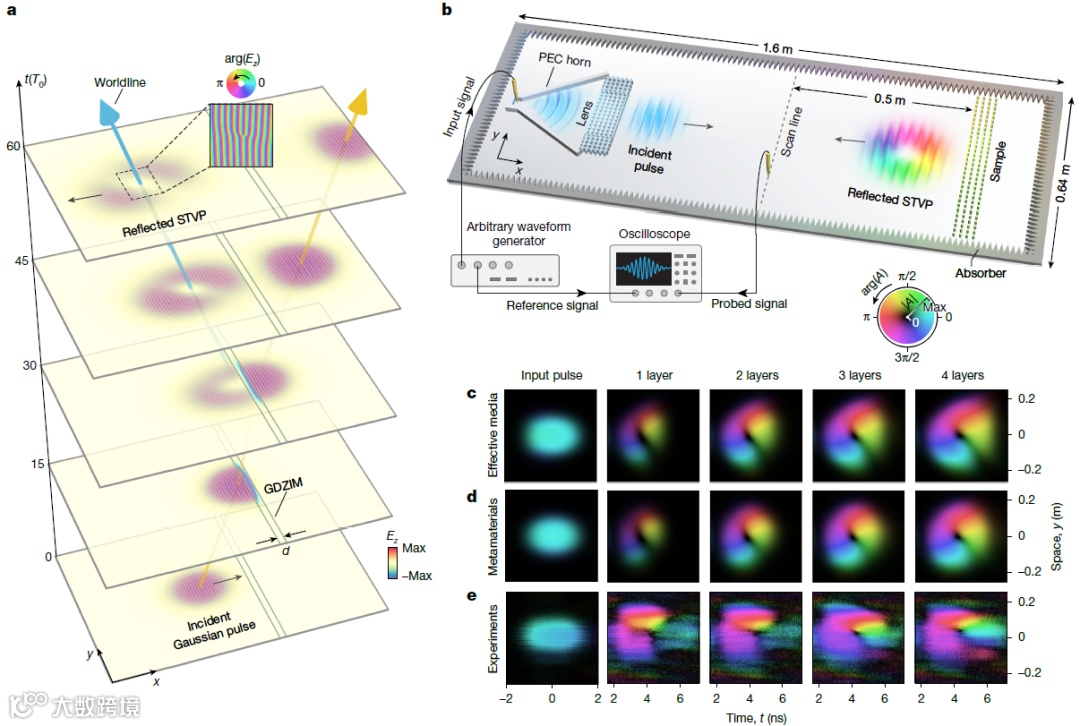 实现的效果:实验验证了 GDZIMs 在狄拉克点处的完美透射与非互易反射特性,观测到拓扑保护的反射相位涡旋。该涡旋电荷由拓扑陈数跃变决定,可稳定生成中心频率与动量固定的光时空涡旋脉冲(STVP)。即使改变超材料厚度、背景介质或切割方向,STVP 的核心参数仍保持不变,展现出极强的环境鲁棒性。