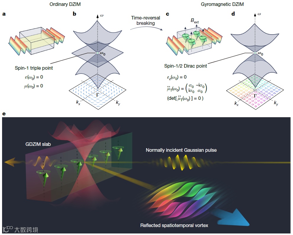 创新点:建立 “体-时空涡旋对应关系”,将拓扑相变与时空涡旋直接关联,突破传统体 - 边界对应理论的静态局限。通过磁光张量参数设计,实现非互易零折射率超材料,为光场调控引入自旋 - 1/2 狄拉克点新维度。该方法无需复杂外部器件,仅通过材料本征拓扑特性生成鲁棒 STVP,为动态光场操控提供全新范式。