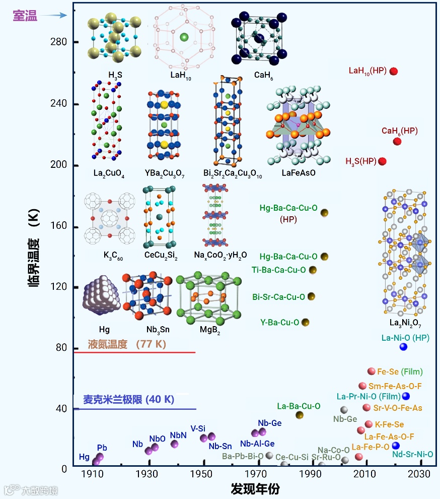 图1 典型超导体的晶体结构、发现年份及其临界温度