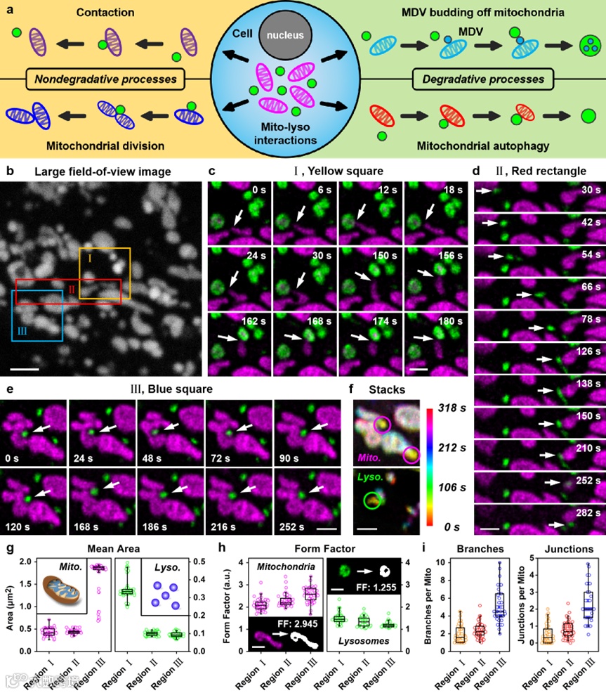 图2:活细胞的长时程Phasor-FSTM成像监测线粒体和溶酶体互作过程