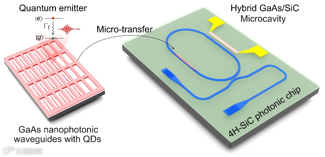 图1:基于III-V量子点和电光4H-SiC材料的混合集成量子点微腔