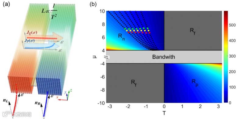 ,它不依赖于晶格结构的细节以及模型的参数,并在正负温度下都有效(图2)。理论分析发现这起源于不同能量下热流和粒子流的解耦以及它们不同的温度依赖性。最后,通过跟踪非对称结的热化过程,发现存在非线性时,系统的功率和热流都存在明显的整流效应。