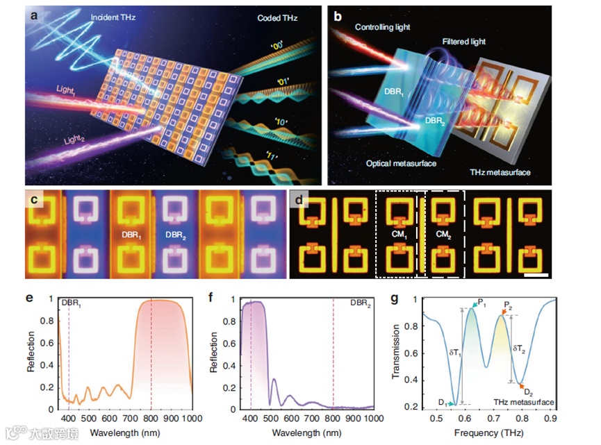 片上光学系统的微型化和高集成度对器件的适应性、多功能性和数据存储容量提出了更高的要求。超表面是一种超薄平面光学元件,在以往的研究中,它作为一种控制光的先进方案出现了,并实现了广泛的光学应用。携带幅度、相位、频率和偏振调制信息的光驱动可重构超表面由于其非接触式、简洁的结构和超快响应能力而受到广泛关注和研究。超快调制行为显著受益于活性材料的光生载流子弛豫动力学,特别是本征外延硅和非晶锗,其制备成本较低,弛豫时间在纳秒和皮秒量级。这些材料在超快太赫兹超器件的制备中具有优势。尽管如此,与人们更关注的电子编码太赫兹调制相比,光学编码过程的研究相对较少。虽然一些研究尝试使用空间光调制器作为编码掩模,激发高阻硅晶片用于太赫兹成像,但它们大多侧重于单通道调制,编码速度较慢。集成化、微型化的光编码元器件在可编程超快太赫兹开关方面的研究亟待开展。