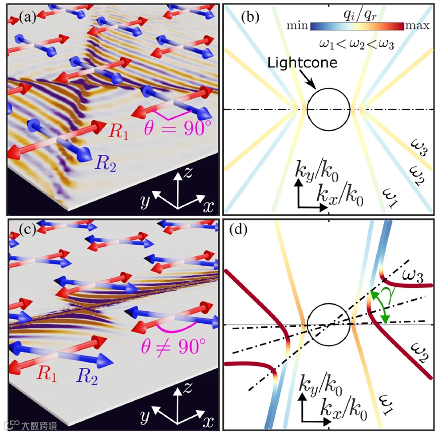 近日,纽约城市大学的Alu教授团队,介绍了双曲剪切超表面,它支持双曲表面波的有效剪切现象,这是通过调整失谐定向共振之间的角度引起的。通过这些效应,可以调整方向性,并在可调带宽上提高双曲表面波的寿命和珀塞尔因子,实现对其传播和耗散特征的极端控制。这个工作建立了一个范式,利用破缺对称性来实现低损耗、超受限和高度定向的表面波传播。所展示的现象可以应用于广泛的频率范围。这些超表面可以在射频中使用失谐谐振器的扭曲双层实现,也可以在光学中使用不对称 V 形谐振器超单元实现。通过旋转自由度实现的合理控制意味着,通过定制的光泵和非线性,可以动态调整双曲超表面中的有效剪切,从而实现实时的大可调性。这些工具可能应用在导致时间相关的轴向色散和损耗重新分布,以及脉冲整形和复用等方面。相关工作发表在《Physical Review Letters》上。(刘帅)