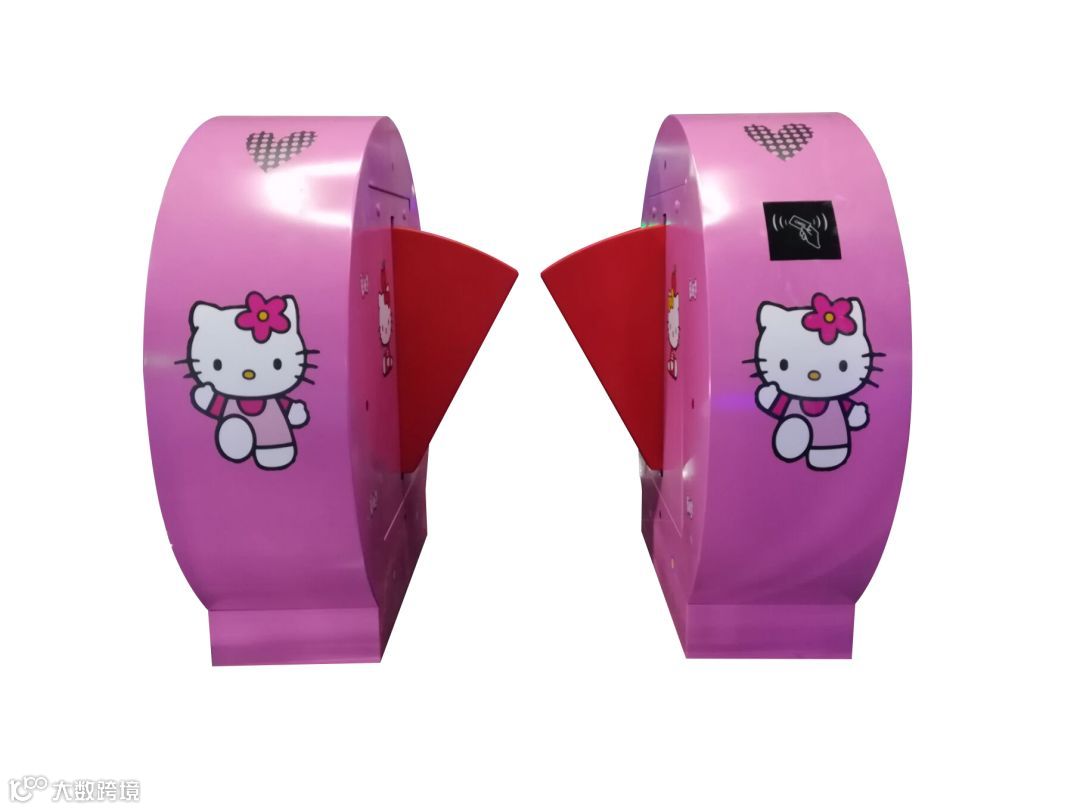 昱瑾幼儿园圆边翼闸YJ09Y10-B,外观使用HelloKitty图案,整个系统运行平稳、噪音小、无机械冲击。