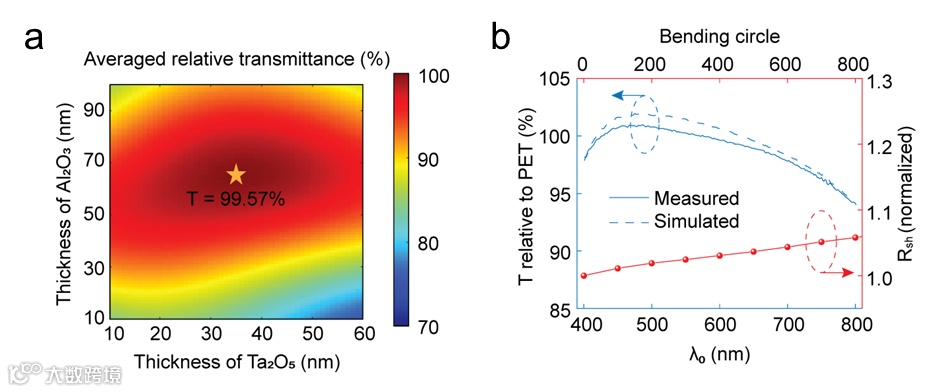 近日,华中科技大学张诚教授团队,伊利诺伊大学芝加哥分校Pai-Yen Chen教授团队和密歇根大学L. Jay Guo教授团队联合提出了一种基于超薄介电-金属-介电纳米复合结构的柔性高性能光学透明天线(optically transparent antenna, OTA)。该复合结构实现了可见光波段(400-800 nm)平均相对透光率达98.94%,方块电阻低至12.5 Ω/sq,有效解决了传统导电材料难以兼具高电导率与高透光性的难题。同时,研究团队展示了该复合导电材料在射频天线领域的应用,设计实现了四种代表性天线:全向偶极天线、单向八木-宇田天线、低剖面贴片天线和法布里-珀罗腔体天线。这些天线具有良好的柔性与可弯曲性,可承受超过70°的弯曲角度,同时具有优异的天线辐射性能,增益高达13.6 dBi,辐射效率高达84.5%。该研究有助于推动光学透明天线在第五代通讯、智慧城市、物联网等新兴领域的广泛应用。