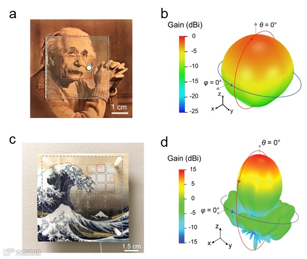 图3:贴片天线与法布里-珀罗腔体天线的实物照片及辐射方向图