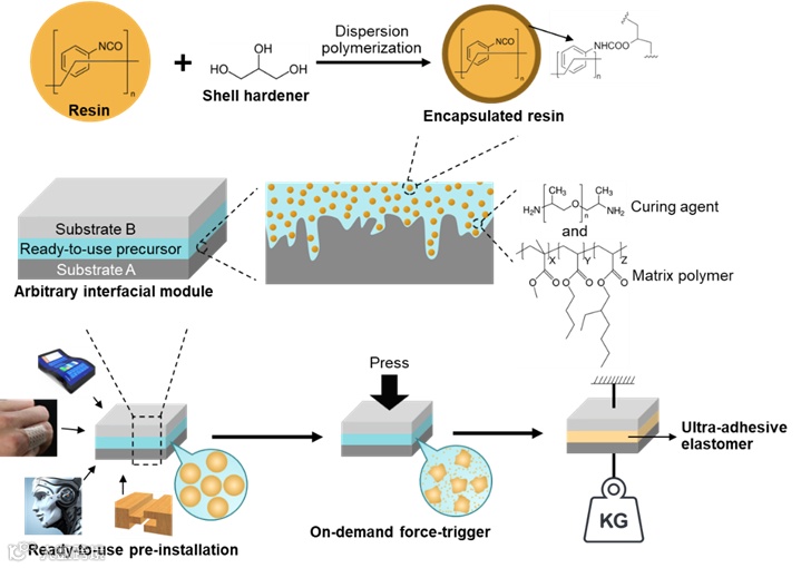 弹性体在许多未来的先进技术中起着至关重要的作用,在这些技术中,弹性体的粘合性能决定了材料的界面性能。尽管在改善弹性体的粘合性能方面取得了巨大成功,但永久性粘合剂因为安装方法的不同往往会过早地粘附在表面上或导致接触不良。然而,基于紫外光或热的按需触发需要对应的外部资源,并往往局限于此。因此,具有不限于用UV光或热触发的按需粘附的弹性体为常规粘合弹性体中的各种应用挑战提供了解决方案。
