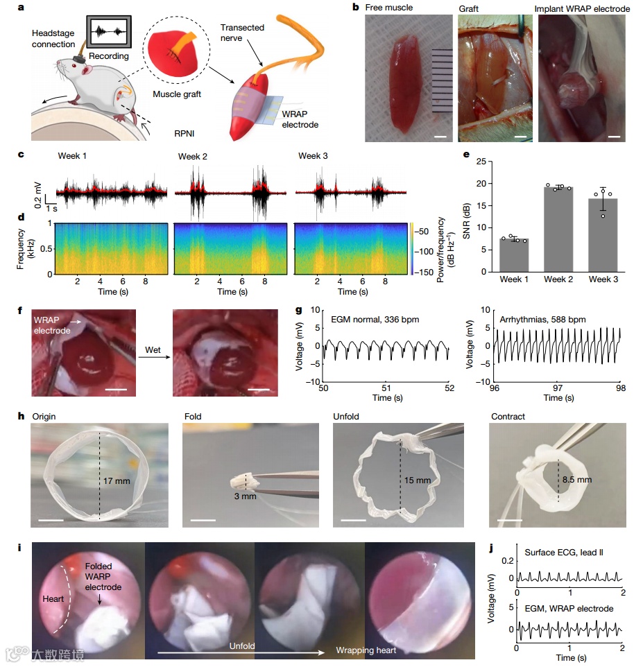 作者将形状自适应WRAP电极应用于生物组织,证实了该电极可用于记录大鼠再生周围神经接口(RPNI)上的肌电图信号和大鼠心脏的心外膜电图(EGM)。