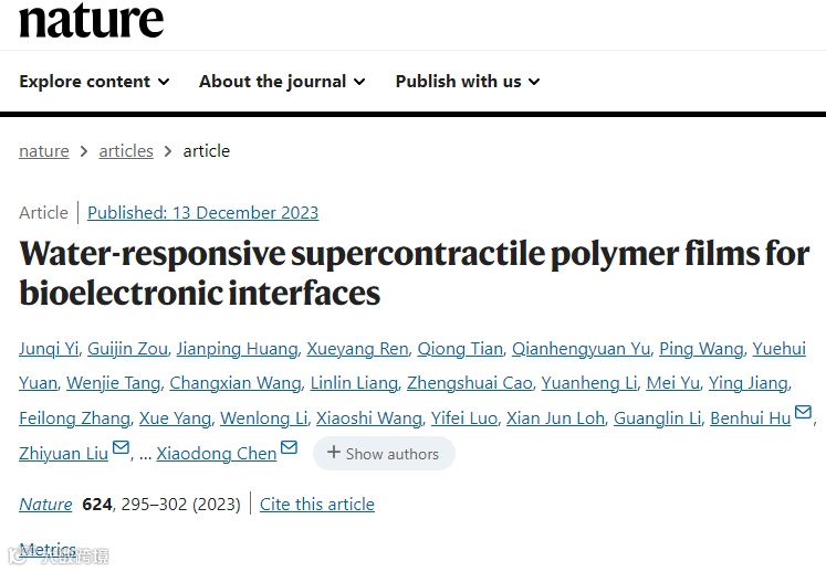Yi, J., Zou, G., Huang, J. et al. Water-responsive supercontractile polymer films for bioelectronic interfaces. Nature 624, 295–302 (2023).