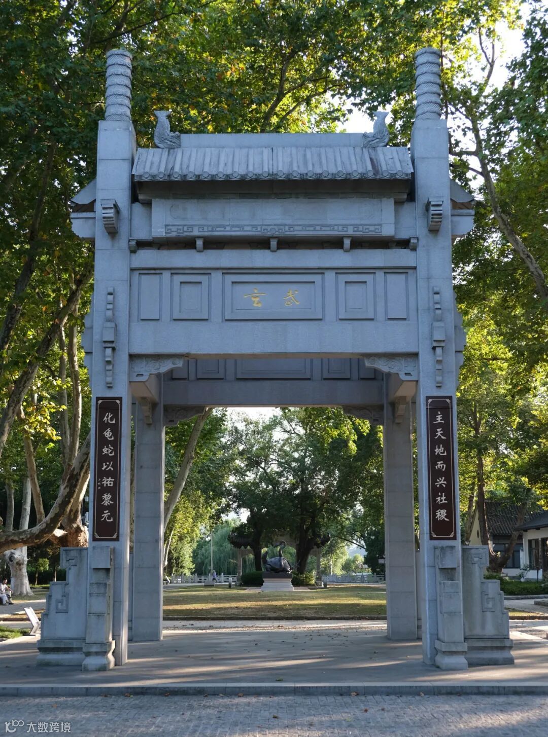 (3) 文底图片拍摄的是金秋时节玄武湖梁洲中的玄武牌坊。坊联“主天地而兴社稷,化龟蛇以祐黎元”,很有气派 (20230909)。小词 (20230906) 原本是对吟金陵秋意,以歌唱秋日河山。这里用来表达量子材料人追逐新物理和新未知的足迹和秋日收成之期待,以抒发个中一番情怀。