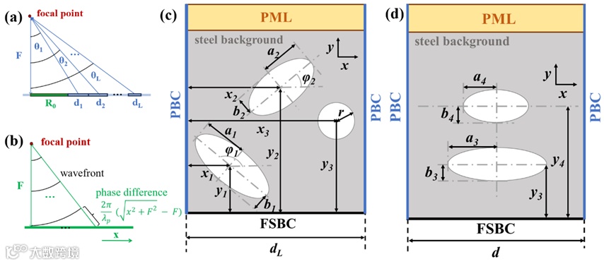 图5.超表面的设计。(a)频率为 200 kHz的正入射纵波,当焦距为