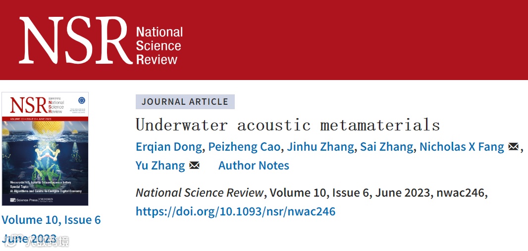 原文来源:National Science Review, Volume 10, Issue 6, June 2023, nwac246;Underwater acoustic metamaterials;https://doi.org/10.1093/nsr/nwac246