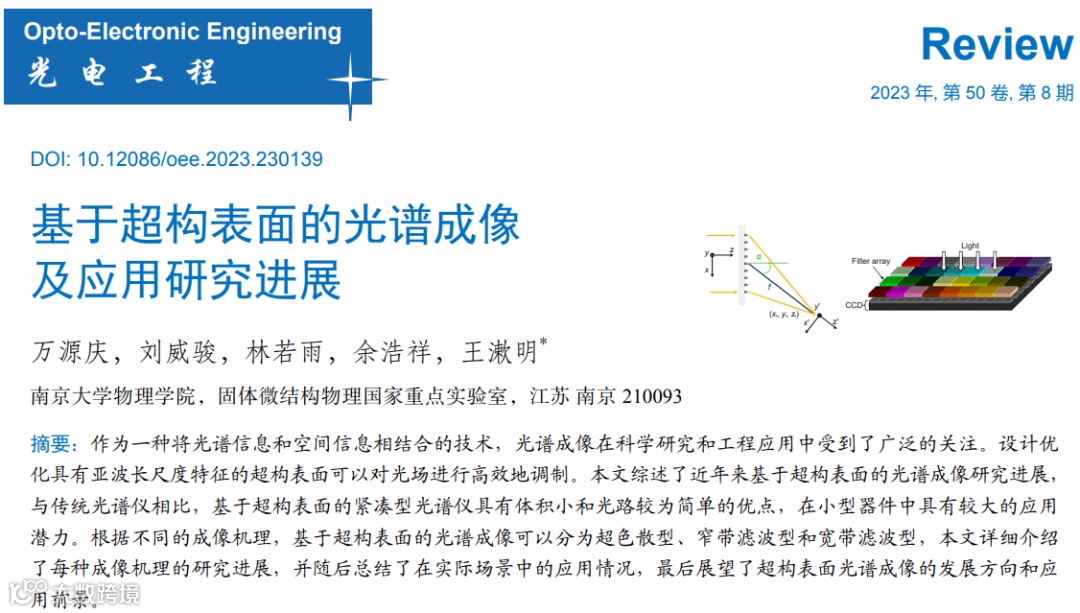 文章 | 万源庆,刘威骏,林若雨,等. 基于超构表面的光谱成像及应用研究进展[J]. 光电工程,2023,50(8): 230139.