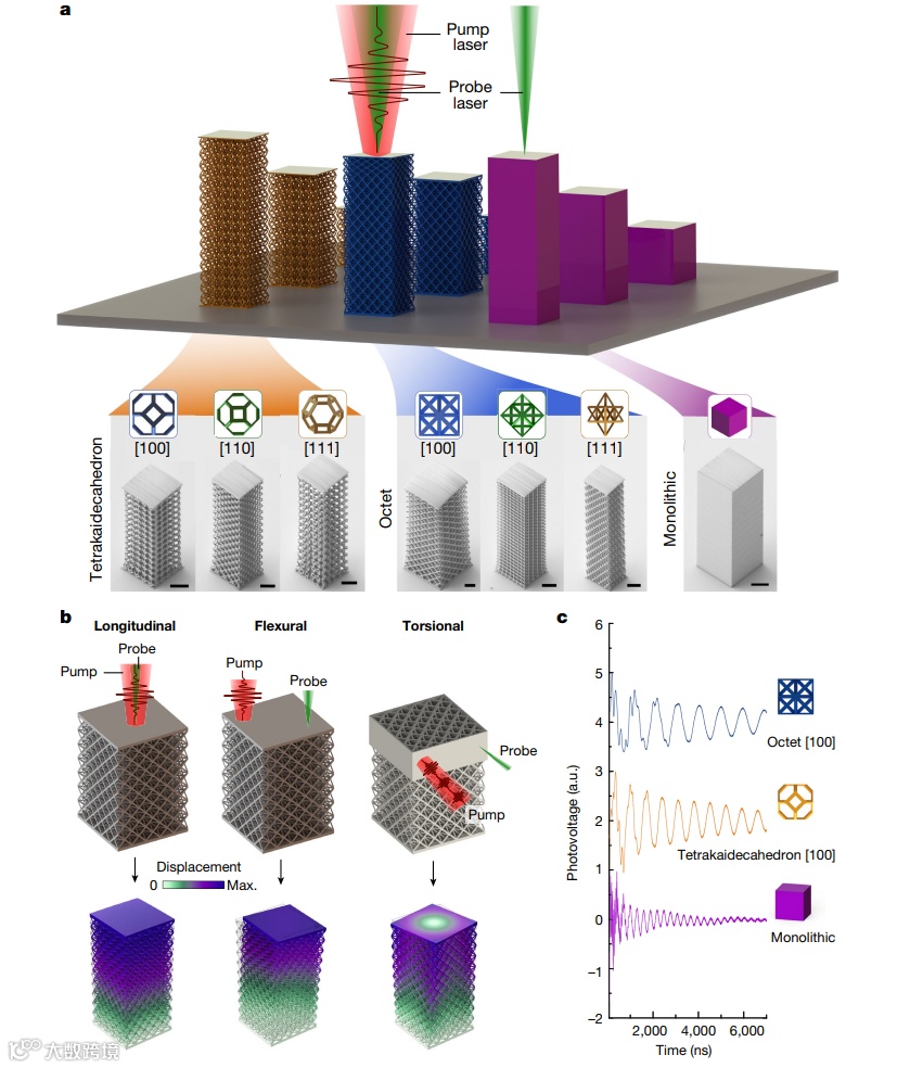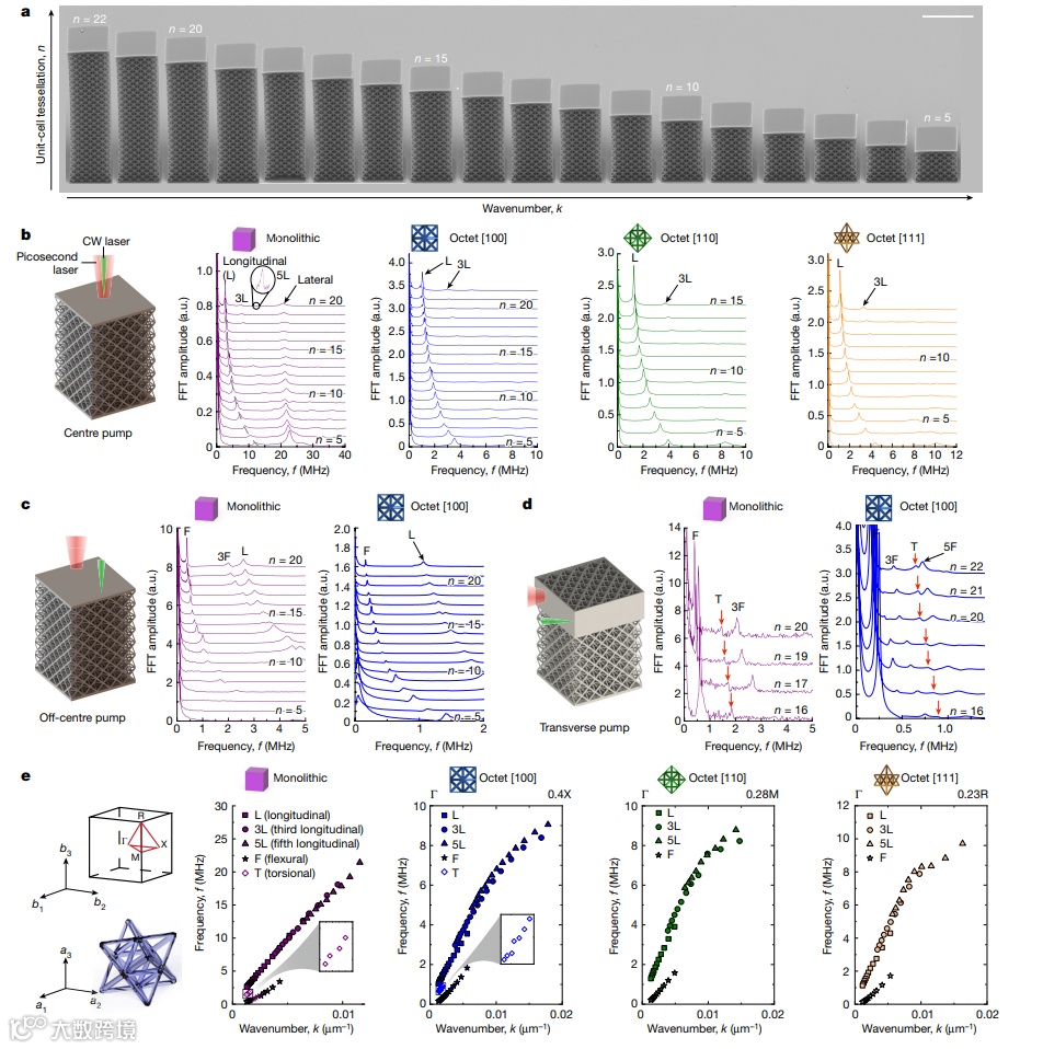 今日,美国 麻省理工学院(Massachusetts Institute of Technology)Yun Kai,Thomas Pezeril & Carlos M. Portela等,在Nature上发文,报道了高通量、非接触式框架结构,并利用超材料内的兆赫兹MHZ波传播特征,无损地提取表征了动态线性特性、全向弹性信息、阻尼特性和量化缺陷。