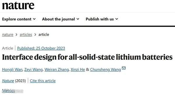 相关研究成果以“Interface design for all-solid-state lithium batteries”为题发表在Nature上。