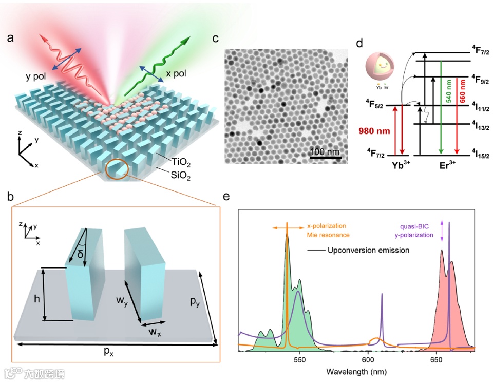 1 谐振电介质超表面增强双偏振上转换光致发光