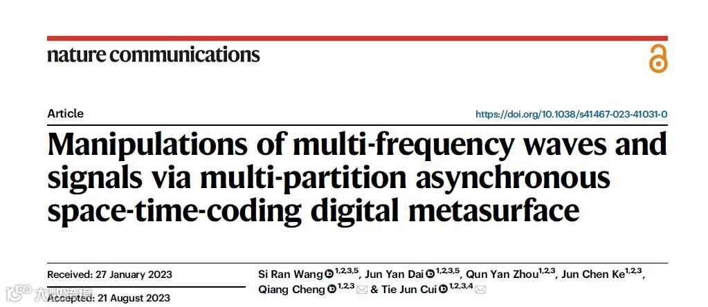 1. S. R. Wang, et al. Manipulations of multi-frequency waves and signals via multi-partition asynchronous space-time-coding digital metasurface. Nat. Commun. 14, 5377 (2023).