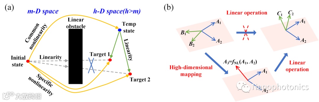 该研究成果以“Performing photonic nonlinear computations by linear operations in a high-dimensional space”为题在线发表在Nanophotonics。