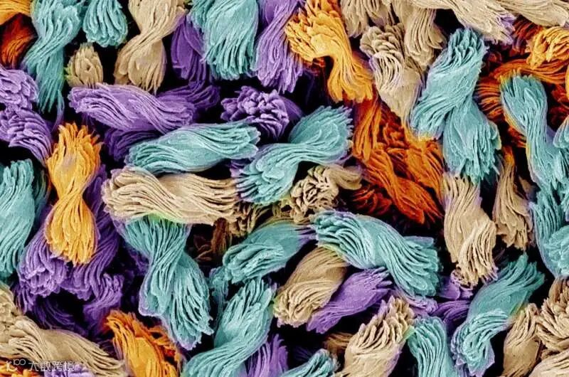 Figure 3. 彩色电子显微镜图像中扭曲的微米级蝴蝶结