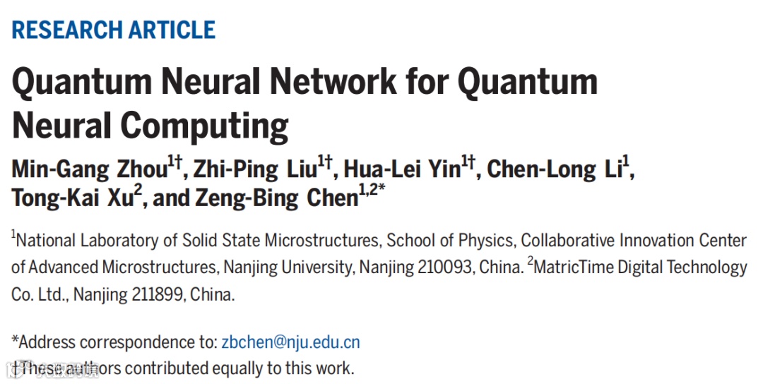 Zhou MG, Liu ZP, Yin HL, Li CL, Xu TK, Chen ZB. Quantum Neural Network for Quantum Neural Computing. Research 2023;6:Article 0134. https://doi.org/10.34133/research.0134