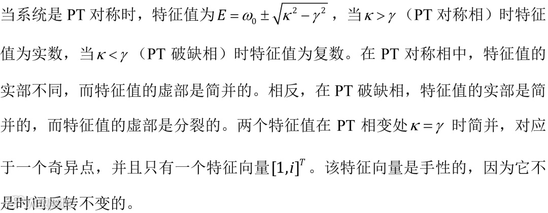 虽然大多数奇异点环绕研究都涉及线性系统,但增益的存在通常与非线性相关,特别是奇异点环绕和增益饱和的相互作用。此外,波矢空间中环绕的奇异点与拓扑能带理论中非厄米光子带的编织直接相关。
