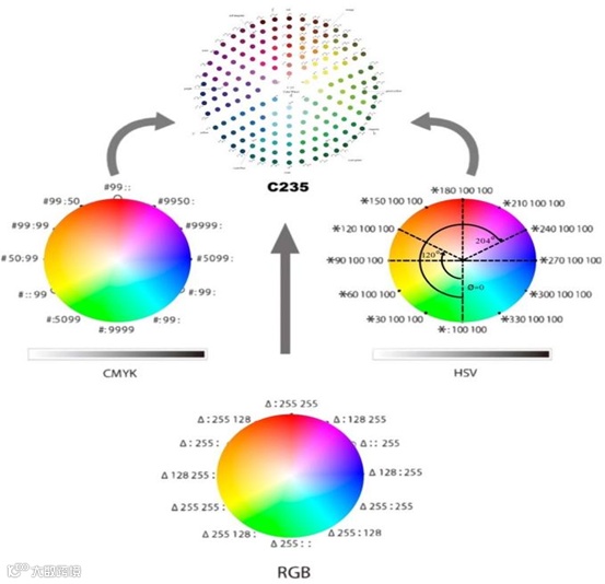 2.易于转换:C₂₃₅可与现有RGB、CMYK及HSV快速转换。