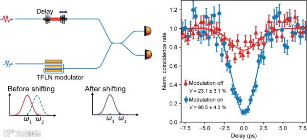 图一:通过薄膜铌酸锂集成电光调制器改变单光子颜色