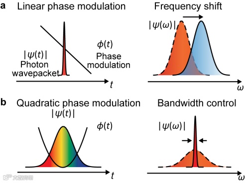 图二:动态相位调制可以控制光子频率和带宽
