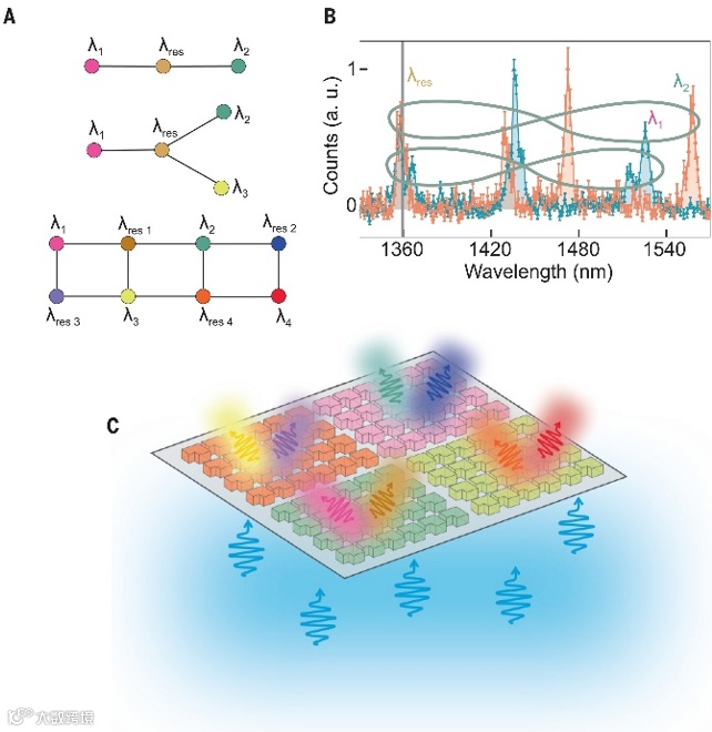 图1:泵浦光子通过共振超表面产生不同波长的纠缠光子对