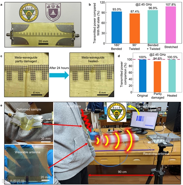 近日,东南大学柔性射频技术研究中心陆卫兵教授团队与智能材料研究院、化学化工学院李全院士团队和南京大学配位化学国家重点实验室李承辉教授团队合作,在自修复柔性微波波导方面取得了重要进展。他们提出并实现了一种新型柔性可拉伸微波波导,该柔性波导具备优异的稳定性和室温自修复功能,为未来柔性可穿戴射频器件与系统的设计制造提供了全新思路。