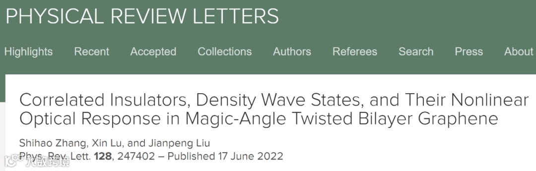 近日,上海科技大学物质学院刘健鹏课题组在转角双层石墨烯摩尔超晶格体系中的关联绝缘态、密度波态和非线性光学响应等方面取得重要进展,相关成果以「Correlated Insulators, Density Wave States, and Their Nonlinear Optical Response in Magic-Angle Twisted Bilayer Graphene」为题发表于物理学科期刊《物理评论快报》(Physical Review Letters)。上海科技大学物质学院刘健鹏课题组博士后张世豪为第一作者,博士后吕昕为共同作者,刘健鹏教授为通讯作者。上海科技大学为第一完成单位和通讯单位。
