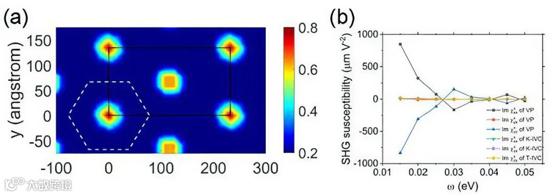 研究发现,实验上在个别整数填充上发现的零陈数态,是电荷分布自发破坏三重旋转对称性的密度波相(图3a),并具有很强的谷极化特征。进一步研究了几个分数填充下的轨道陈绝缘态和密度波态,可发现其呈现出谷间相干态或谷自旋极化态,这些计算结果均符合实验观测。此外,由于零陈数的「无特征」关联绝缘态在通常的输运或光学实验中无法体现出任何特殊信号,研究人员还采用对称性分析和非线性响应理论论证方法,分析了该体系所有可能的自发对称性破缺态所对应的非线性光学响应,并发现多数零陈数的「无特征」绝缘态由于其谷极化性质,会呈现出显著的非线性光学信号(图3b)。