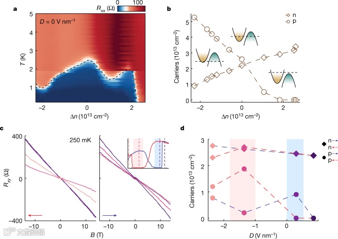 实际上这材料的超导性非常特殊。超导体电阻转变为零的温度,称为超导临界温度,这取决于材料中的电荷载流子密度。而该研究中,当负电荷(电子)和正电荷(空穴)共存并且具有几乎相等的密度时,超导温度在MoTe2中达到最大值。这意味着它不符合超导性的标准理论,需要进一步的理论和实验研究来揭示其超导性的起源,以及超导性和铁电性耦合背后的微观机制。