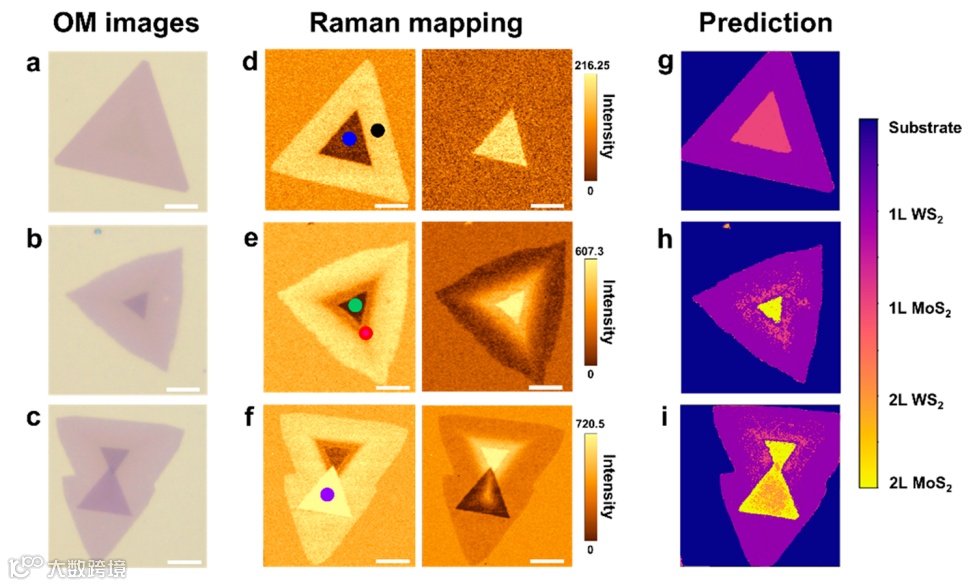 二维材料异质结的界面特征对于器件性能有重要影响,通常需要拉曼光谱和透射电镜技术等表征方法,过程繁琐。这一基于人工神经网络算法的技术仅通过OM图片中的信息就可快速判断异质结的界面特征,结果与拉曼平面扫描的结果一致(图3),因此这一方法将对异质结的构筑工艺发挥重要辅助作用。