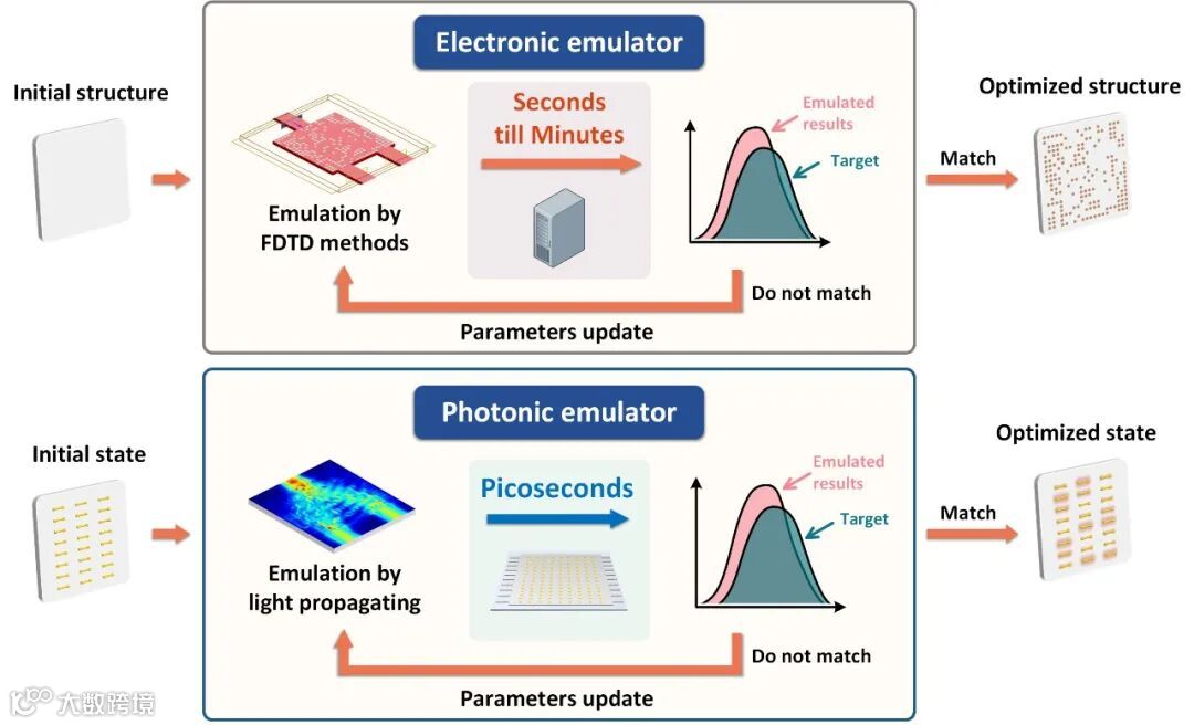 图1. 用于逆向设计的电子仿真器和光子仿真器的概念图。