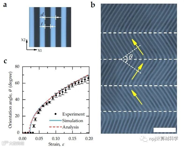 近日,来自中南大学轨道交通安全教育部重点实验室的李健教授联合威斯康辛大学麦迪逊分校机械工程系的Stephan Rudykh教授,研究了软异质复合材料的形貌特点,其丰富的域结构会导致长波不稳定性,这会在后屈曲状态下形成高度有序的孪晶微观结构。作者通过实验,观察到了3D打印软复合材料中孪晶图案的形成,及其向经典微观波浪图案的转变。通过数值模拟,表明在这些软复合材料中,孪晶图案的发展在能量上优于波浪图案。同时,作者通过引入一个封闭形式的解析表达式,预测了域在后屈曲状态下模式的演变。此外,他们分析了软复合材料成分对不稳定性诱导模式的影响,并为设计具有定制微观结构转变的可调谐材料系统提供了指导。其揭示的孪晶微结构可用于实现完全可逆的特性和功能。该研究结果有助于开发可调谐光学和声学设备、软机器人、可拉伸电子设备和生物医学设备的材料系统平台,为在有序的低尺度材料系统中创建新图案提供了重要方法。该文近期发布于npj Computational Materials 8: 100 (2022)。手机阅读原文,请点击本文底部左下角“阅读原文”,进入后亦可下载全文PDF文件。