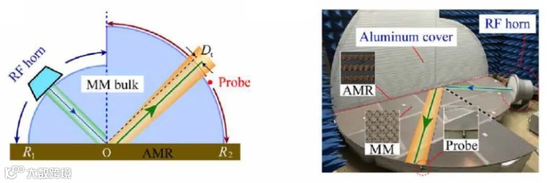 作为直接实验验证,研究团队运用变形的开口环(SRR)制备了具有磁电耦合特性的电磁超构材料(metamaterial),将该超构材料设计为具有各向同性的空间色散(图3);利用该超构材料制备了两个四分之一圆形状的样品,测量了电磁波在该样品与人工磁导体反射体(AMR)界面处发生的波束位移现象(图4);通过拟合实验数据,并与理论计算结果相比较,验证了横向自旋属性光学霍尔效应这一新现象。