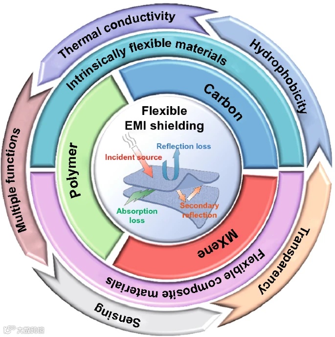 将MXene与聚合物、碳材料等基体结合,其复合物可在实现高柔性的同时,充分发挥MXene的电磁耗散能力。