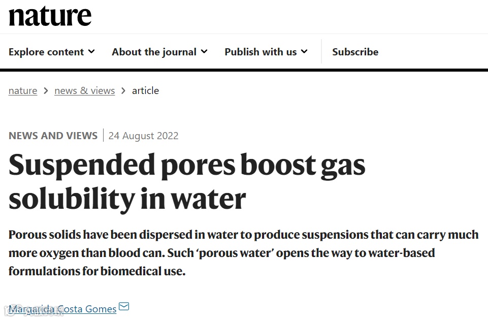 【2】Margarida Costa Gomes. Suspended pores boost gas solubility in water. Nature, 2022.