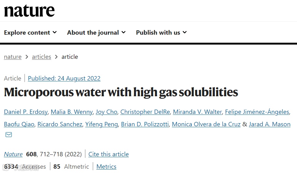 【1】Daniel P. Erdosy et. Al. Microporous water with high gas solubilities. Nature, 2022, 608: 712-718