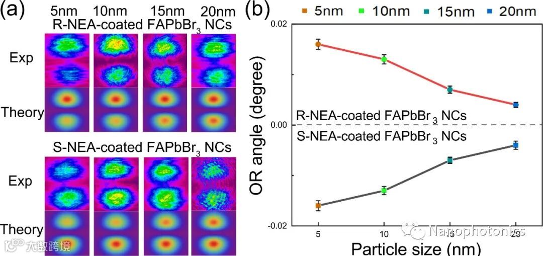 图2 不同粒径包覆条件下NEA-coated FAPbBr3 NCs的手性探测结果