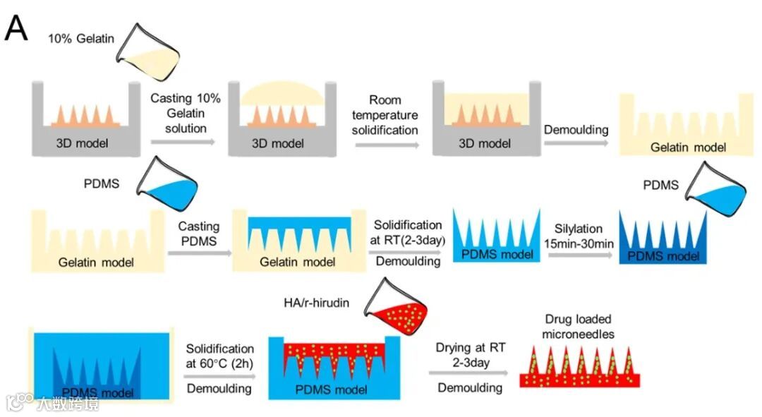 图3.微针模具及 3DMN 制备流程图