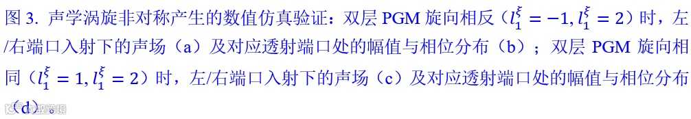 因此,基于上述物理机制的双层超构表面可以有效实现涡旋声场非对称产生现象。