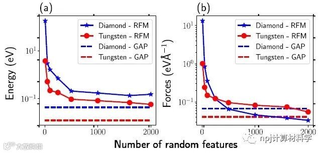 来自多伦多大学的Gurjot Dhaliwal等人提出了一种可以高效模拟原子间相互作用(如能量和力)的计算方法。他们提出的广义线性模型使用随机特征的线性组合来近似模拟能量和力,并基于此解决线性最小二乘问题实现快速参数估计。该方法分别用随机傅里叶特征和随机特征图来近似静止核和非静止核,利用机器学习有效地从DFT模拟数据集学习IP。研究发现,基于ML开发的IP具有通用的函数形式,可以容易地推广应用于不同类别的复杂材料。利用这种方法的MD模拟获得的能量和力,与DFT计算值完美吻合。更重要的是,该模型的低维参数空间和线性函数形式极大地提高了计算效率,减低了运行成本,计算速度比 DFT 更快,且允许更快的超参数搜索和优化。该文近期发布于npj Computational Materials 8: 7 (2022) 。