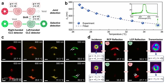 从DNA到甲虫鞘翅,大自然丰富多样的手性结构,为功能材料及器件的设计构筑带来无尽灵感。作为一类典型手性软光子材料,胆甾相液晶(cholesteric liquid crystal, CLC)具有自组装纳米螺旋结构和多元外场响应的手性光子带隙,拓展了光子多维度操控的可能性。特别地,CLC圆偏振敏感的布拉格反射,对光子自旋角动量(spin angular momentum, SAM)具有天然选择性。除了与圆偏振相关的SAM,光子还具有与螺旋形波前有关的轨道角动量(orbital angular momentum, OAM),在光镊、激光加工、复用光通信、超分辨显微等诸多领域具有重要应用价值。其中,独立信道的有效检测与解复用至关重要,这就对光子SAM、OAM的同时按需检测提出了更高的要求,而目前方案在动态可控性、模式无损性等方面存在一定局限。