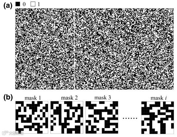 图4 掩膜版的空间信息(a)144×256的局部哈达玛矩阵;(b)不同掩膜版的空间图案